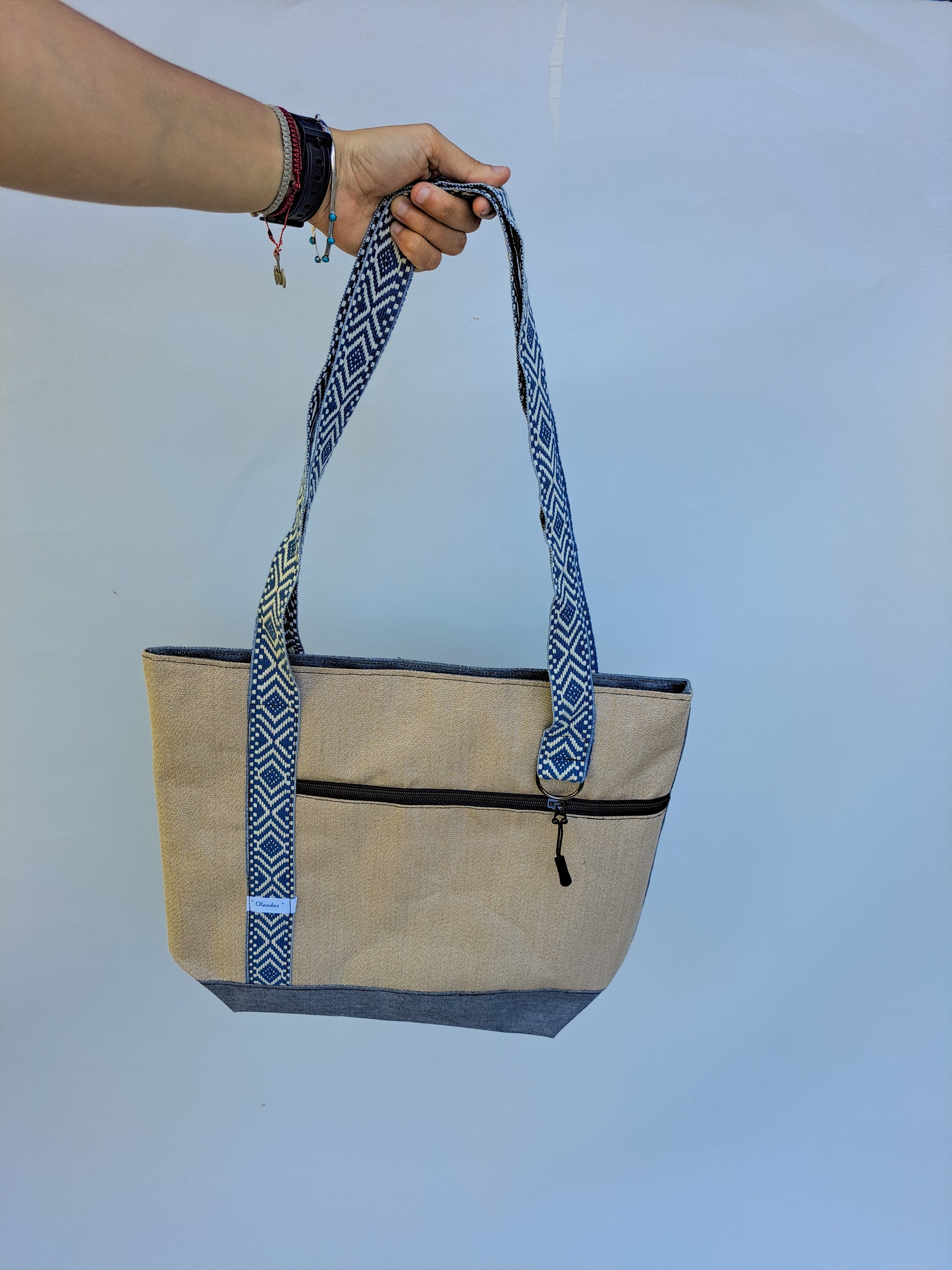 These bags were born in 2025, in the heart of our small workshop. Each one is unique, with reclaimed fabrics, sturdy linings, and colorful handles that remind us of summer markets, sunset strolls, or a train ride with friends.