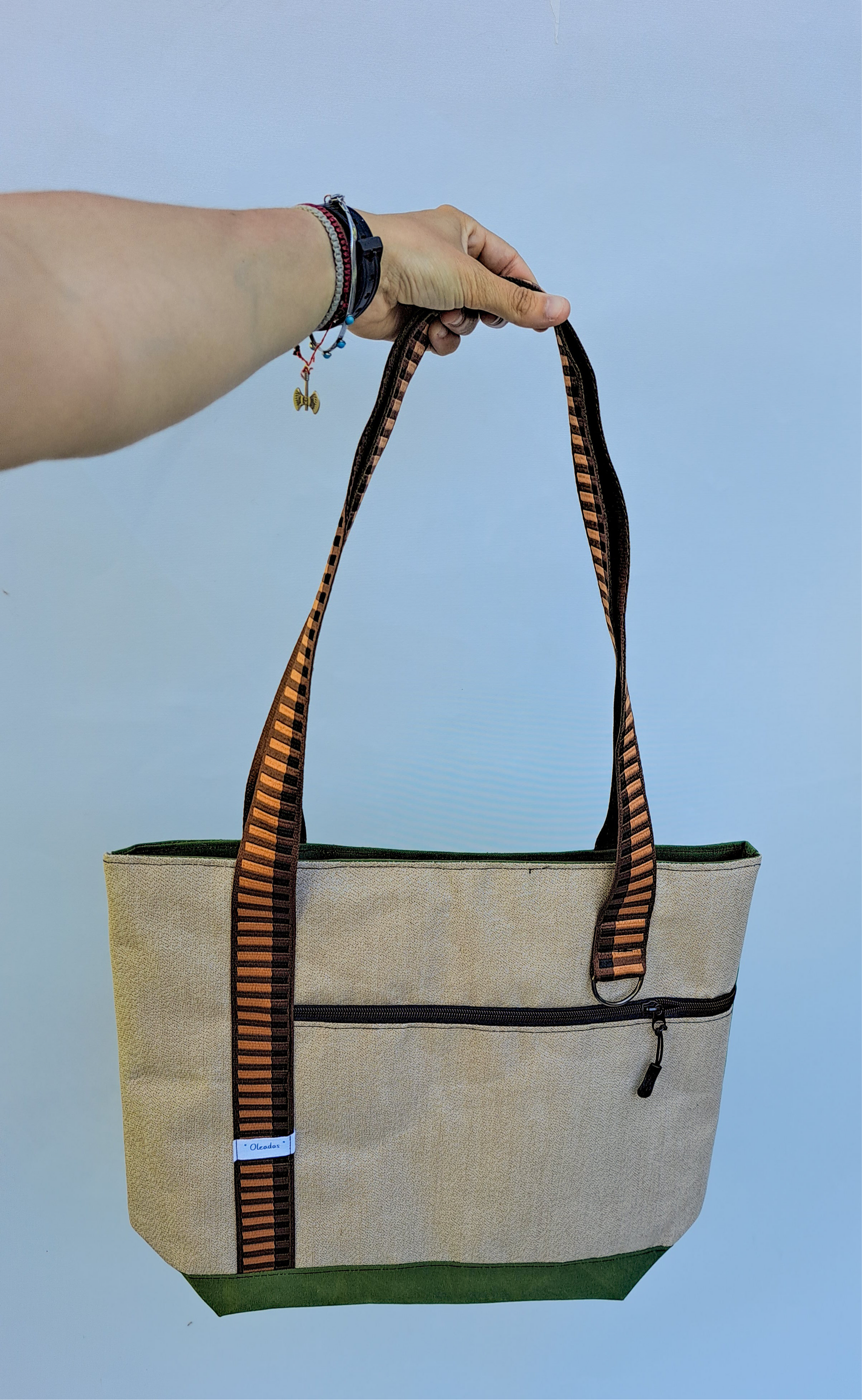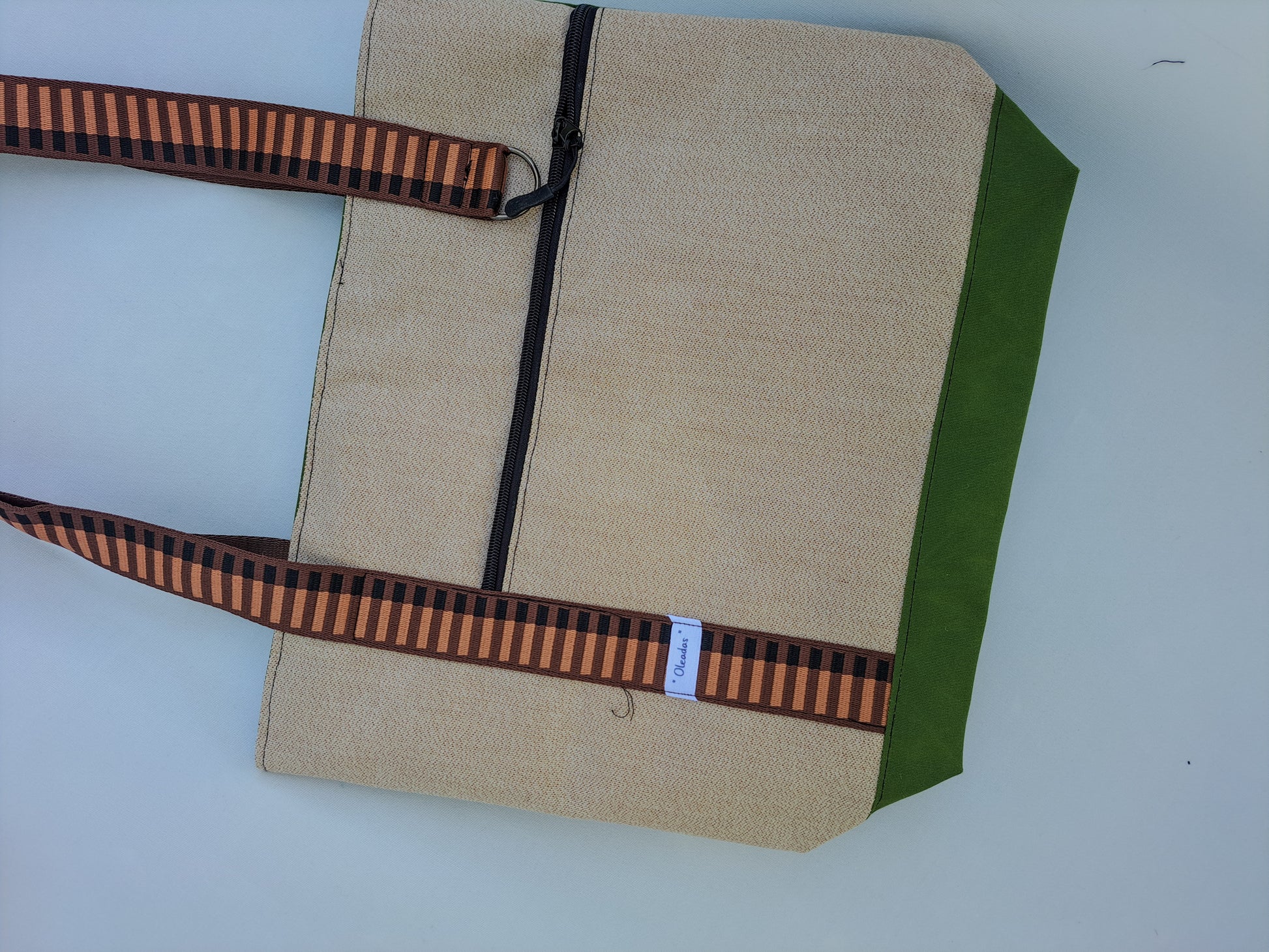 These bags were born in 2025, in the heart of our small workshop. Each one is unique, with reclaimed fabrics, sturdy linings, and colorful handles that remind us of summer markets, sunset strolls, or a train ride with friends.