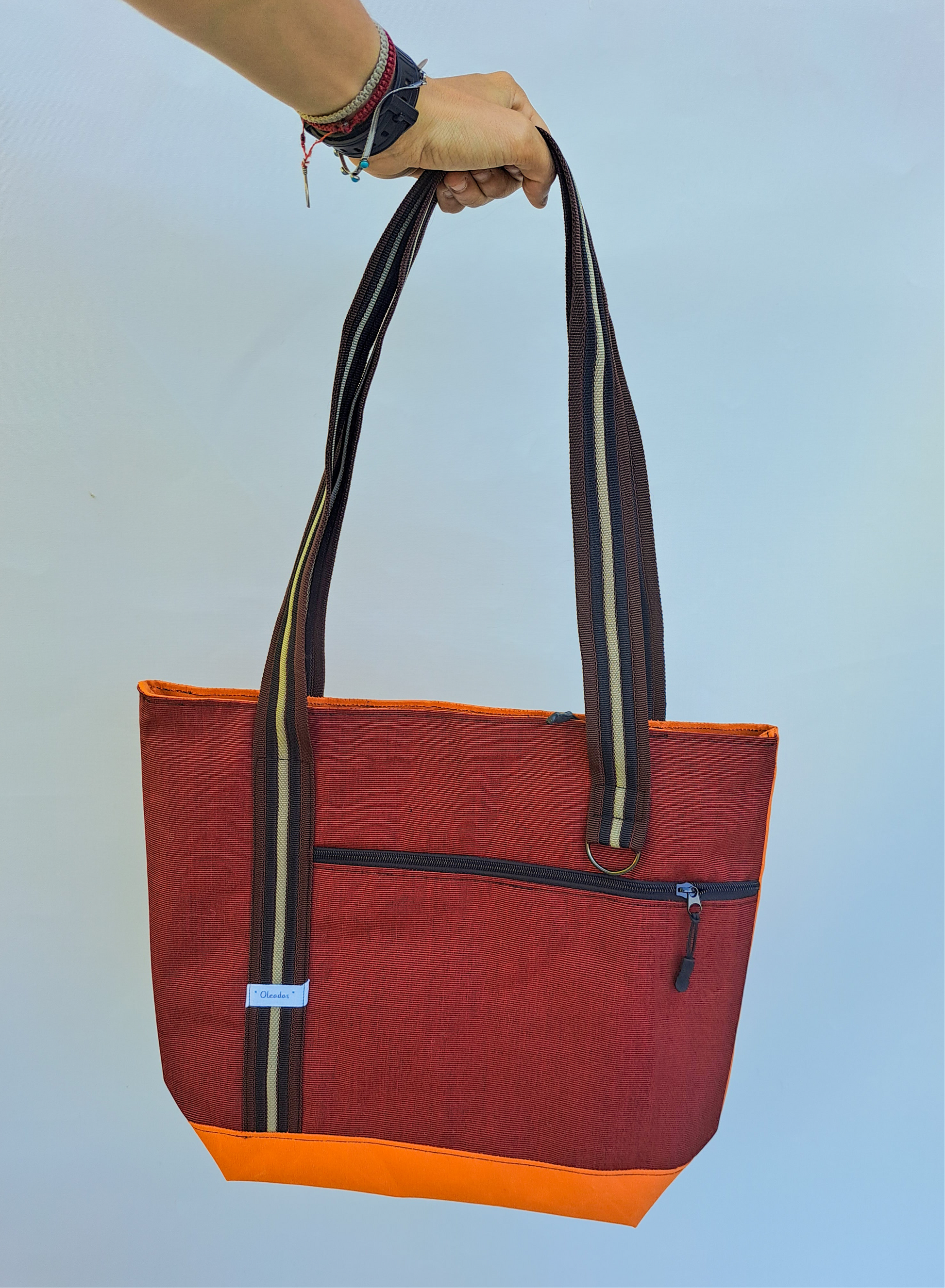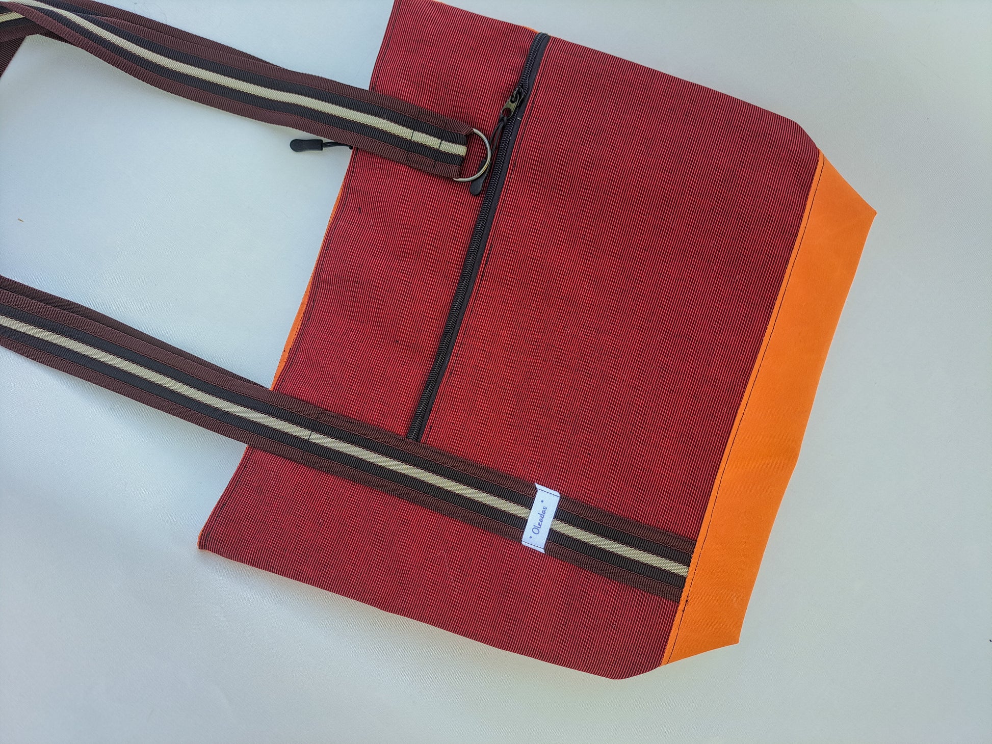 These bags were born in 2025, in the heart of our small workshop. Each one is unique, with reclaimed fabrics, sturdy linings, and colorful handles that remind us of summer markets, sunset strolls, or a train ride with friends.