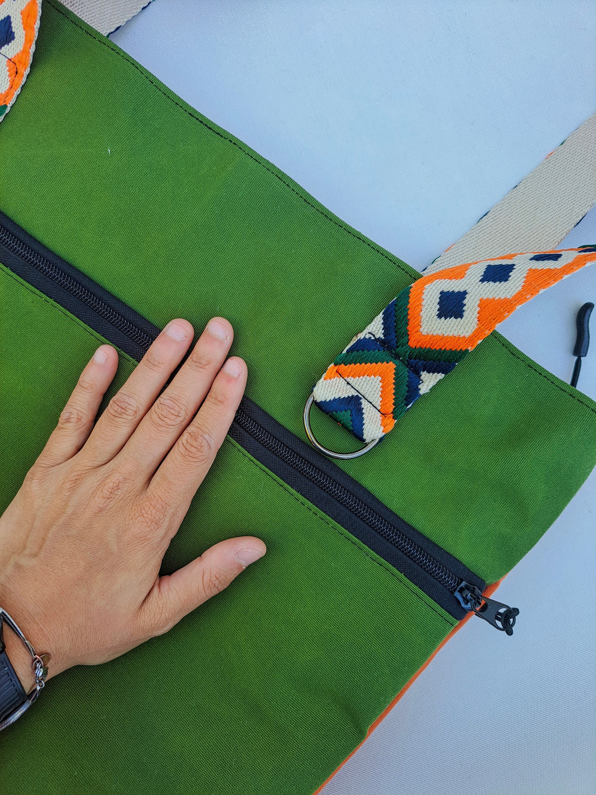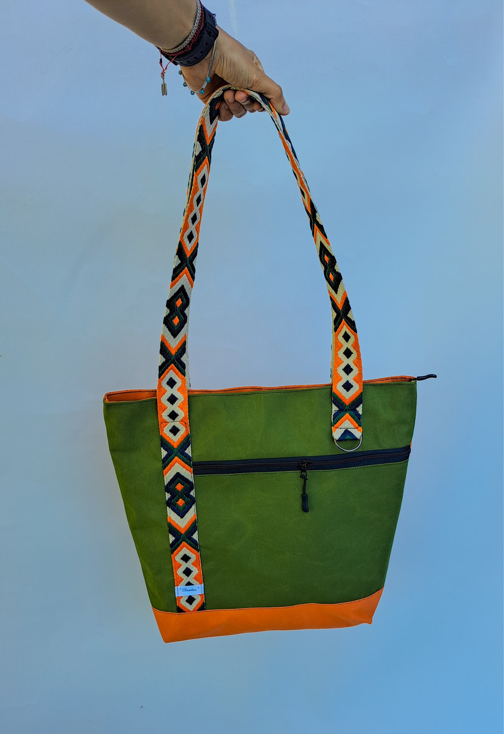Estos bolsos nacieron en 2025, en el corazón de nuestro pequeño taller. Cada uno es distinto, con telas recuperadas, forros resistentes y asas de colores que nos recuerdan a mercados de verano, paseos al atardecer o alguna escapada en tren con amigos.